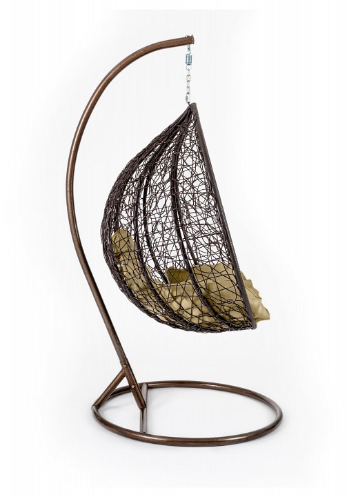 Кресло подвесное (mod. SC-003) с подушкой Металл/Искусственный ротанг, стойка: 105х105х195 см, корзина: 105х68х118 см, стойка:медный,корзина